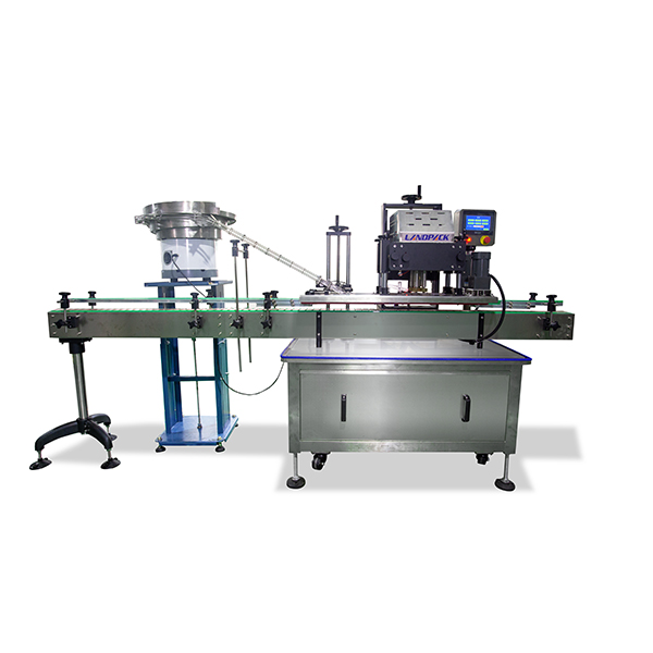 該自動(dòng)灌裝線是由灌裝機(jī)+理瓶收瓶機(jī)+四輪旋蓋機(jī)+貼標(biāo)機(jī)組成